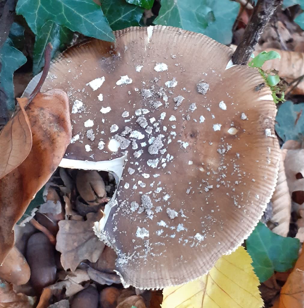 Amanita pantherina var. abietum (Gilbert) - robustnější, stanoviště jehličnanů.
