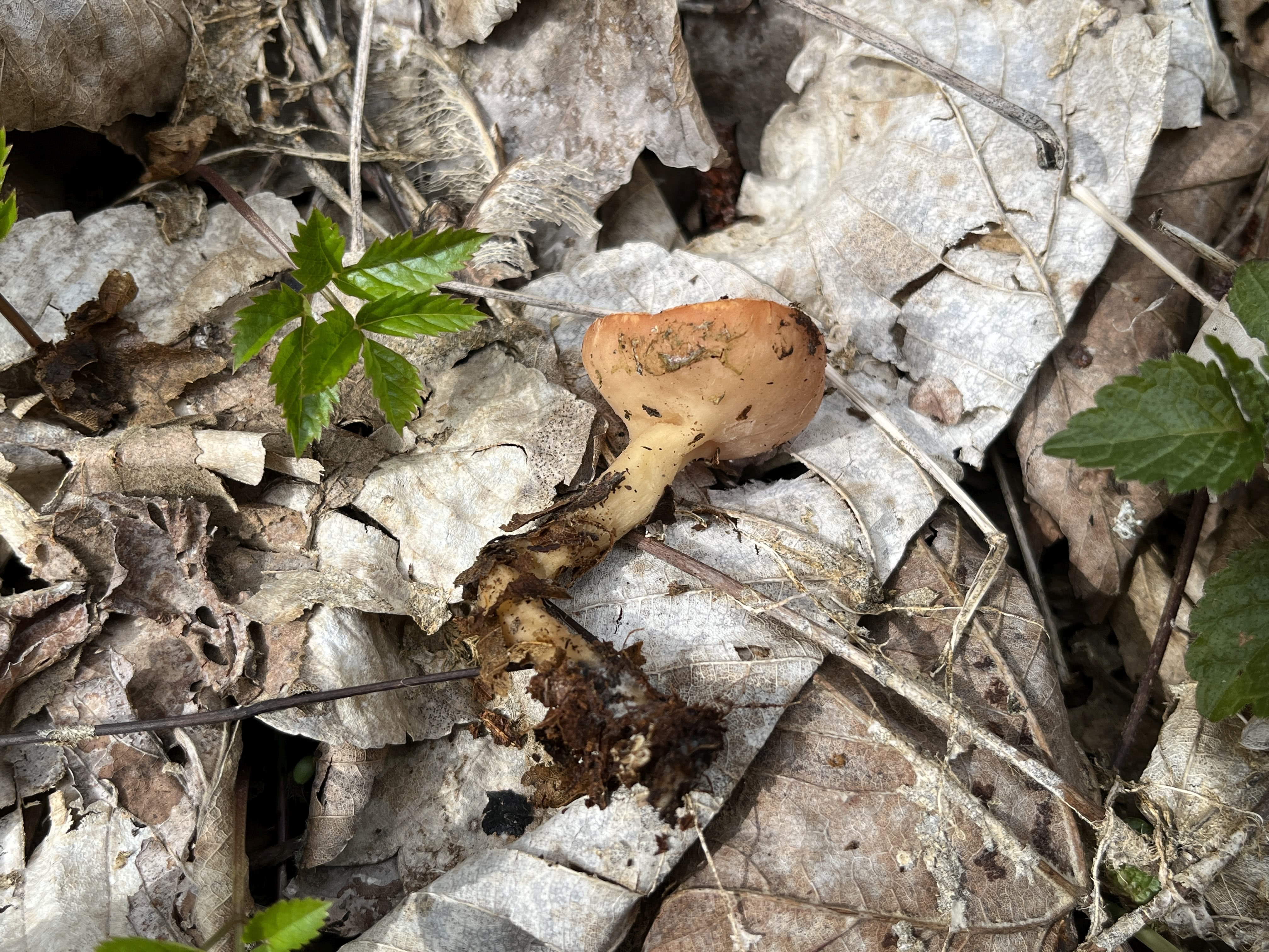 Dieser Pilz ist größer, hat eine orange Farbe anstelle von rot und gedeiht eher im Boden als im Holz.