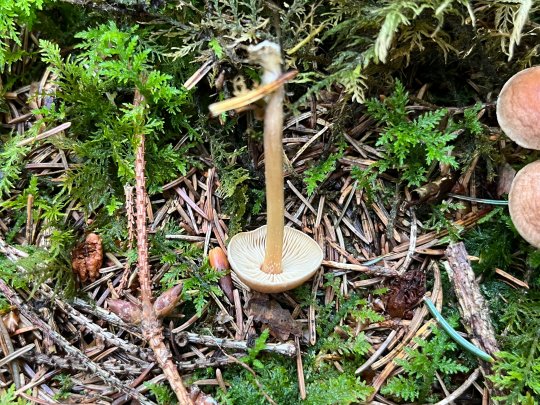 2.5-13 cm de largo; 2-9 mm de grosor; más o menos igual, o acampanado en el ápice y/o en la base; seco; duro y flexible; finamente velloso o finamente aterciopelado con pelusa blanquecina que se hace más notable a medida que la seta madura; de color beige a canela pálido.