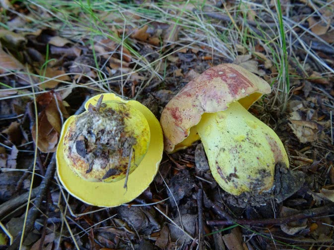 Miąższ kapelusza może mieć zielonkawy odcień. Żółta łodyga sinieje na niebiesko & następnie brązowieje. Łodyga zwykle nie ma siatki. Miąższ kapelusza może mieć lekko kwaśny lub cierpki smak. Lubi dąb & sosna.